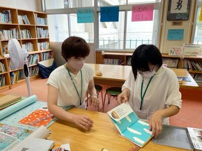 この日は、新しく購入した本に保護フィルムを貼るお仕事をしていただきました。今後も、配架作業や図書室の方は飾りつけなどの仕事を行う予定とのことです。図書ボランティアは、随時募集しています。興味のある方は、学校までぜひご連絡ください。