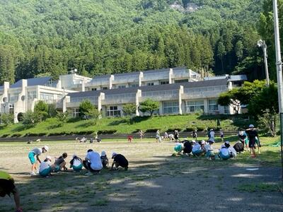 21日(月)全校児童と職員による校庭整地作業が行われました。