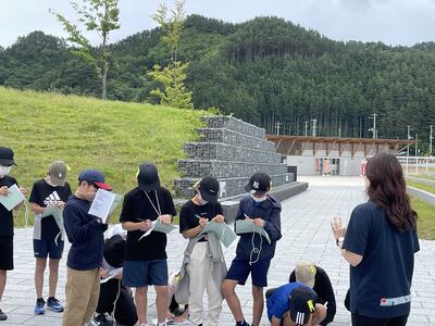 『いのちをつなぐ未来館』では二つのグループに分かれ、屋内施設と祈りの広場を見学しました。