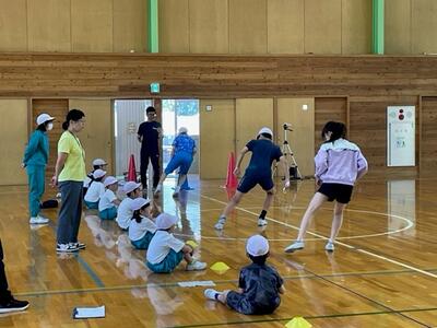 今週は体力テストウイークです。 今日は、1年生と6年生が実施。 6年生のテストに驚きの声を上げる1年生。 そして、1年生にやり方を教えたり、数を数えてあげたりする6年生。 随所に素敵な交流が見られました。