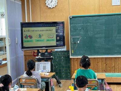 来週から始まる「元気アップチャレンジ週間」を前に、栄養教諭の中村先生によるオンライン食育指導が行われました。今日のテーマは「かむことの大切さ」。